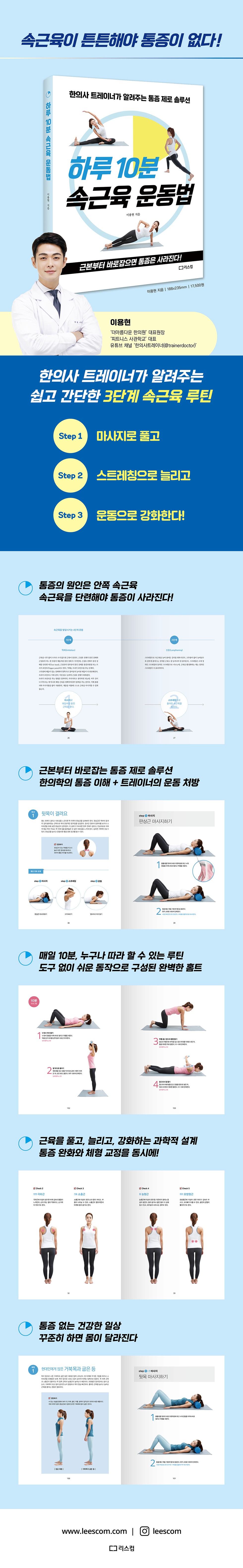이 책의 특징은 운동할 시간조차 없는 현대인들을 위해 10분으로 충분한 일상 속 속근육 강화 루틴을 제안한다는 점이다. 특별한 장비 없이, 작은 공간에서도 가능한 동작으로 구성되어 있어 바쁜 직장인과 초보자 모두 부담 없이 시작할 수 있다.